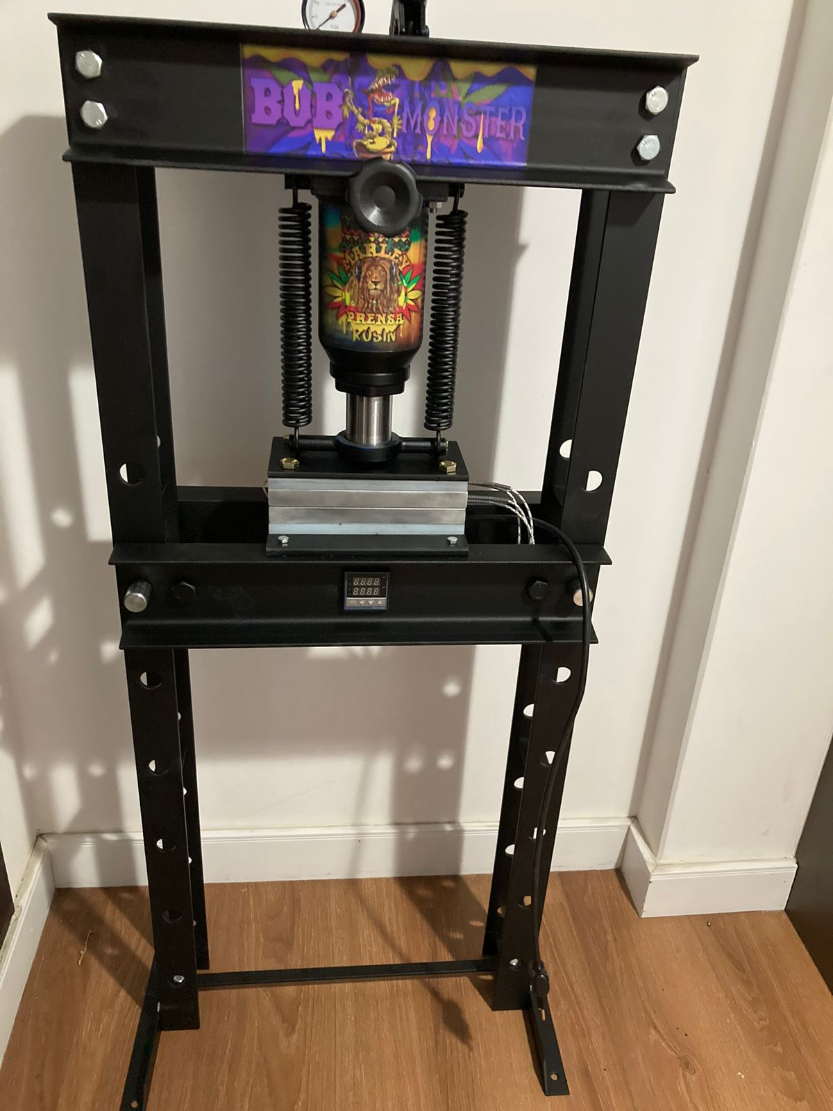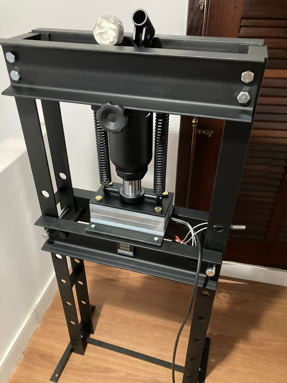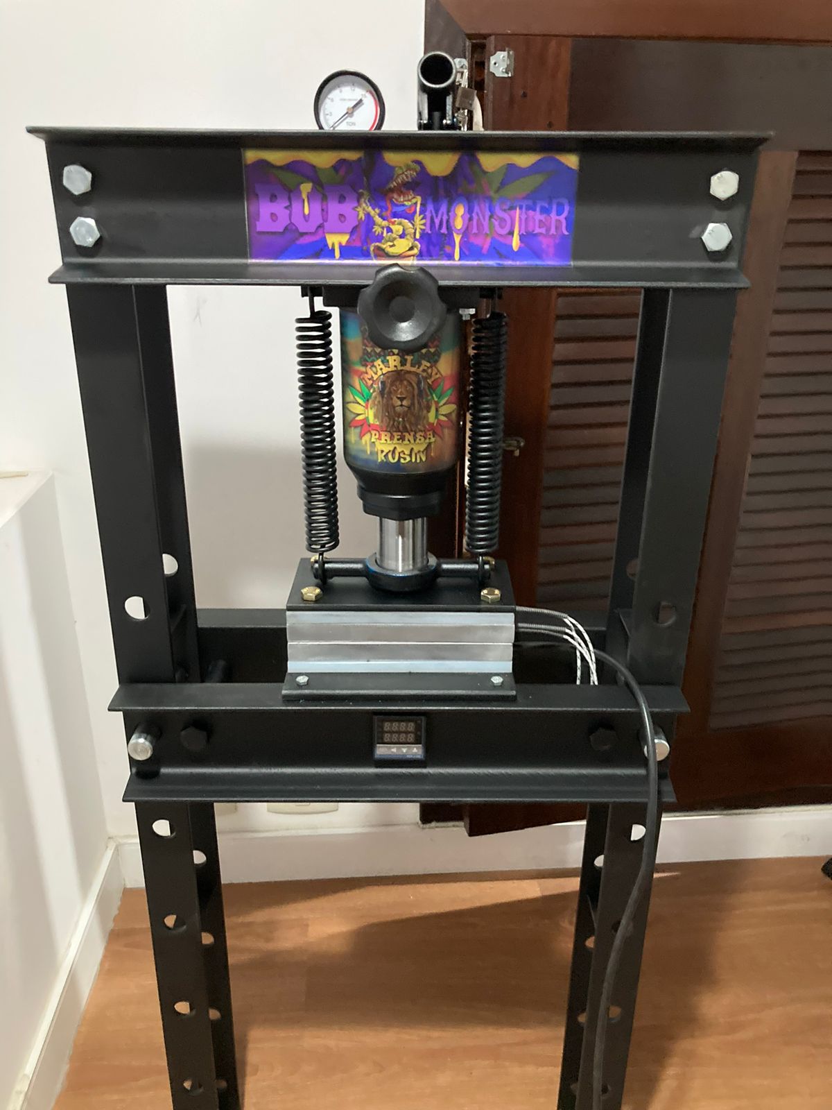 Estrutura robusta com sistema hidráulico ou manual (dependendo do modelo) que permite ajuste preciso da força de prensagem, garantindo maior rendimento e preservação de terpenos.